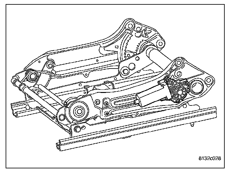 The lower power seat adjuster contains one reversible motor that is connected to a wormdrive gearbox that moves the seat adjuster through a screw-type drive unit. On vehicles equipped with non-memory power seats, the motor will contain a self-resetting circuit breaker to protect it from overload. On vehicles equipped with memory power seats the motor overload protection is a function of the Memory Seat Module (MSM). The motor is part of the lower power seat track unit and must be replaced as an assembly.