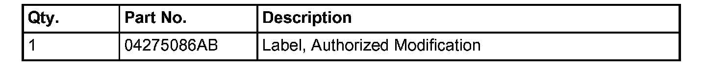 15. Type the necessary information on the "Authorized Modification Label p/n 04275086AB and attach near the VECI label (Fig. 1).