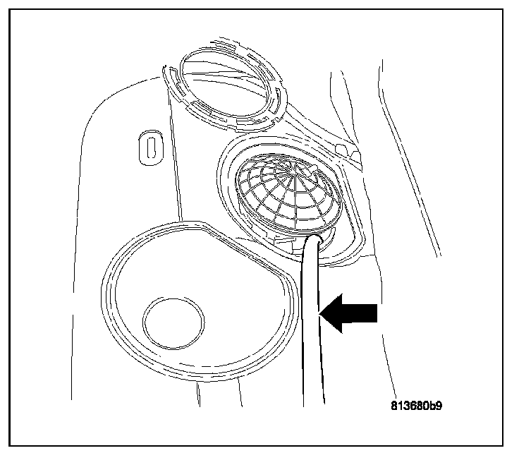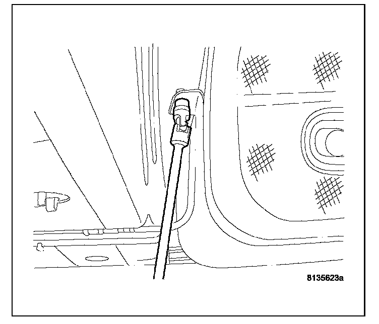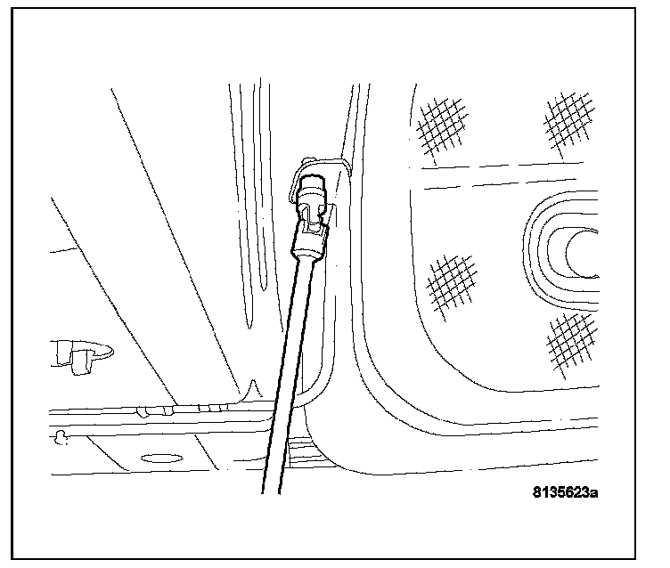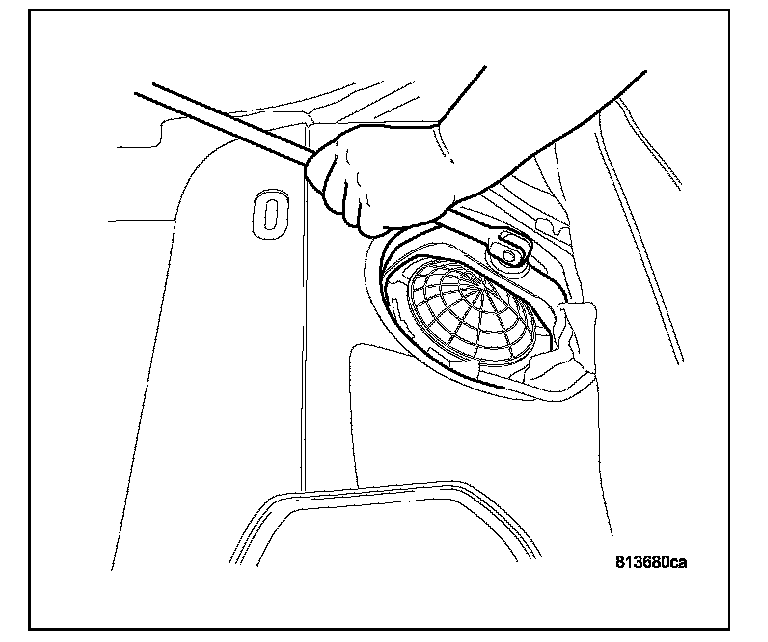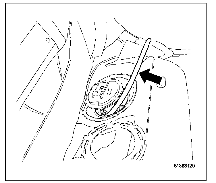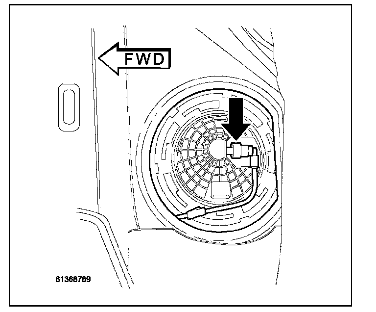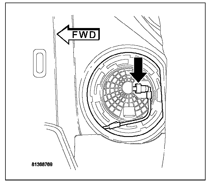 11. Drain fuel from right side of fuel tank. Lift module up enough to push hose into tank and drain. Do not spill fuel in interior of vehicle.
