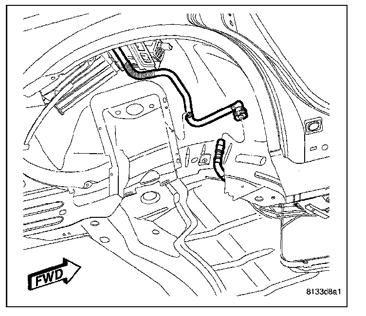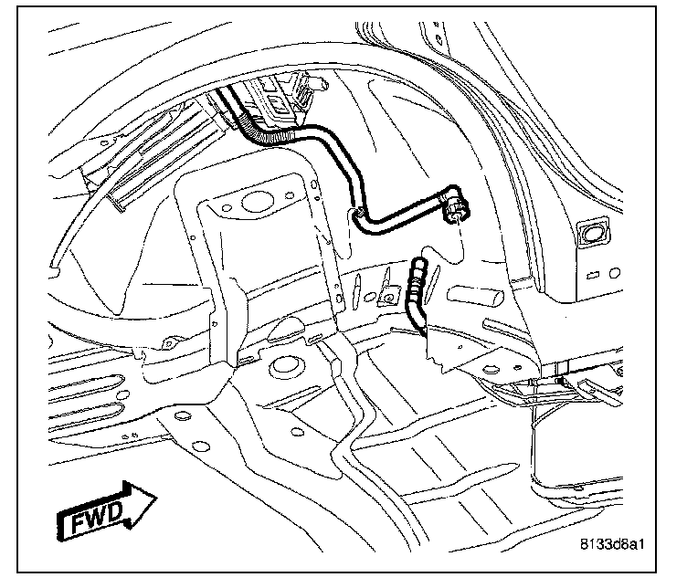 8. Connect the EVAP line in the right rear wheel well.