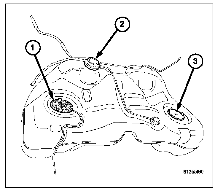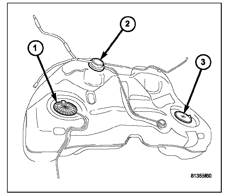 3. Fuel tank strap bolt locations.