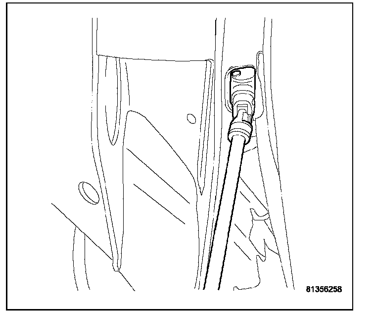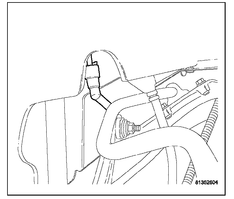 15. Drain fuel from left side of fuel tank. Lift module up enough to push hose into tank and drain. Do not spill fuel in interior of vehicle.