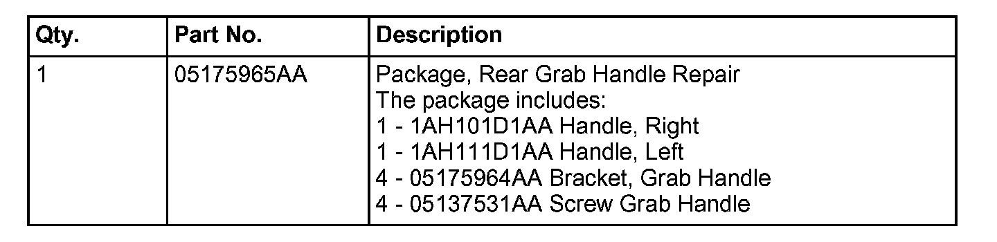 This bulletin involves replacing both rear grab handles, brackets and screws.