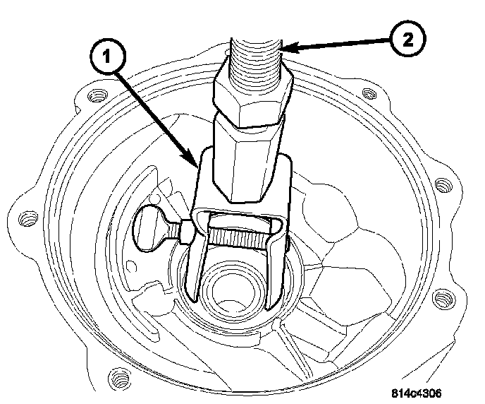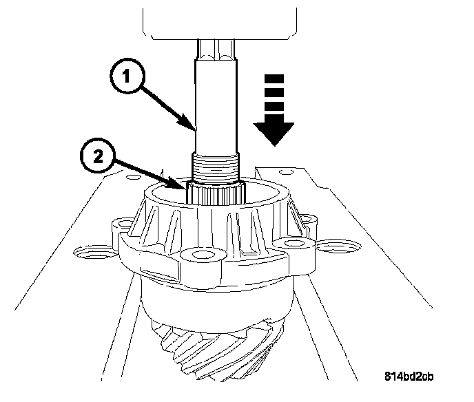 10. Using Tool L-4507 (1), press on pinion flange (2).