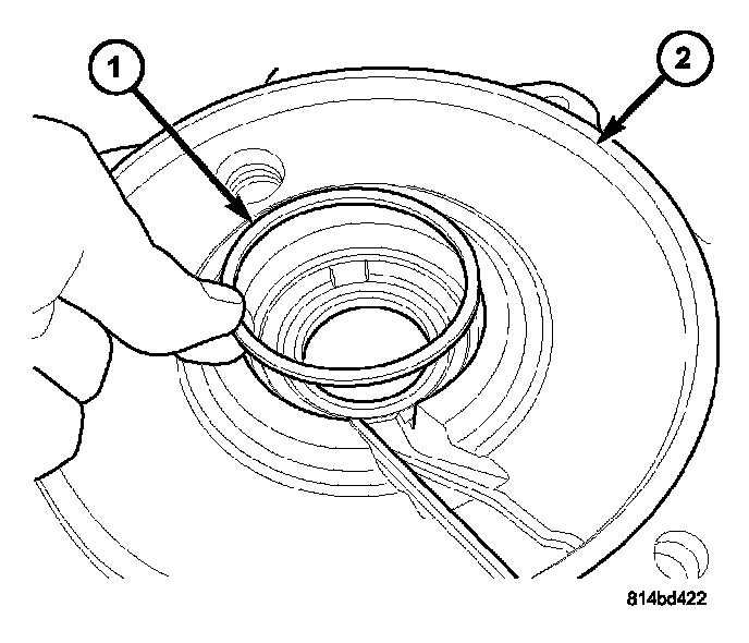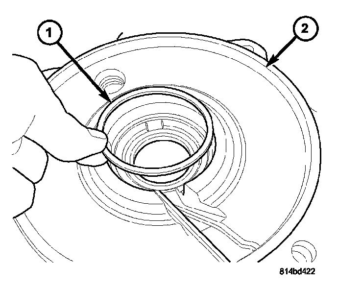 9. Install new differential side bearing preload shim (1) into axle housing cover (2).