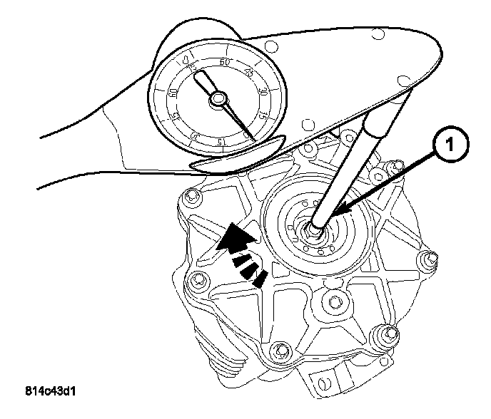 2. Using a dial-type torque wrench (1), measure pinion housing rotating torque. Rotating torque should be within 130 - 260 N-cm (12 - 23 inch lbs.). If rotating torque is below this range, disassemble pinion housing, measure and install a slightly thicker spacer (1), reassemble and reverify. If rotating torque is above this range, disassemble pinion housing, install a slightly thinner spacer, reassemble and reverify rotating torque.