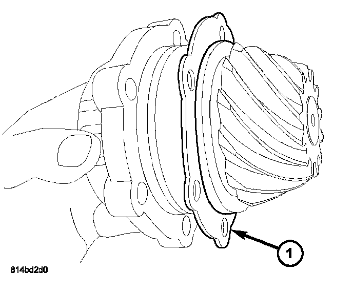 2. Remove pinion housing and depth shim (1) from axle assembly