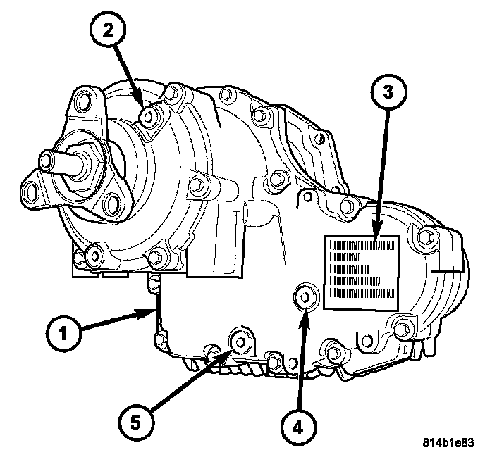 The transfer case (1) has a barcode label (3) applied to the right side of the rear transfer case housing to provide important part number and build information.