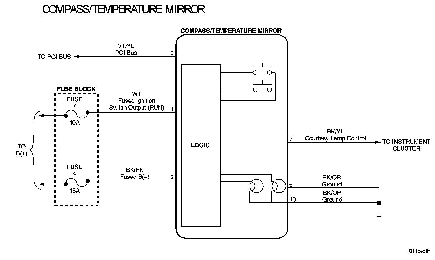 Compass/Temperature Mirror: