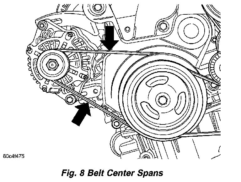 8. Install power steering pump/air conditioning compressor drive belt.