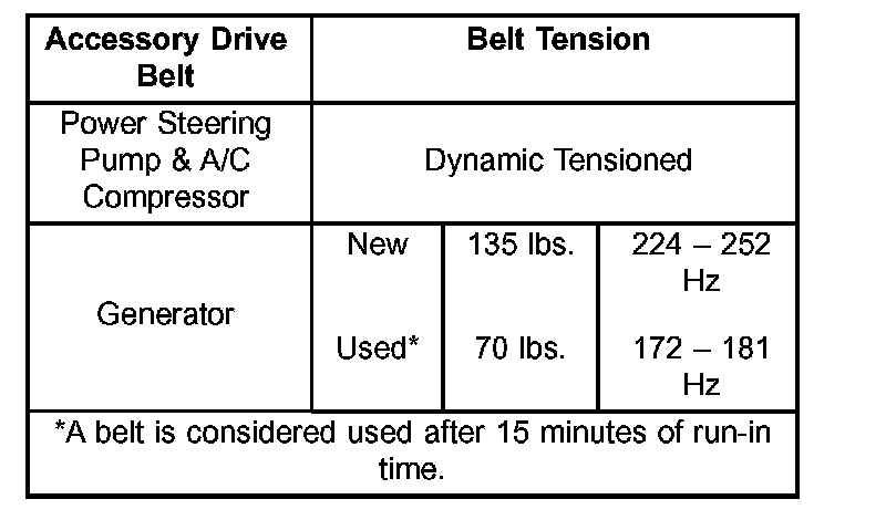 DRIVE BELT TENSION CHART