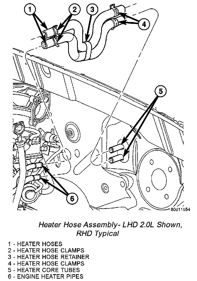 Heater Hose Assembly - LHD 2.0L Shown, RHD Typical:
