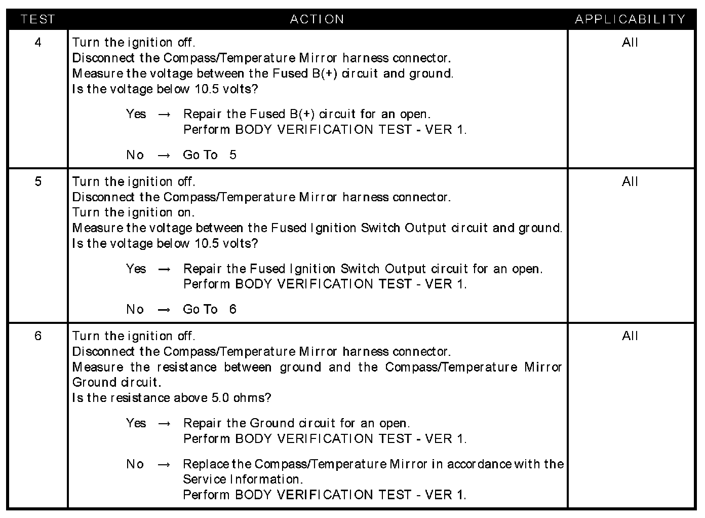 COMPASS/TEMPERATURE MIRROR INOPERATIVE