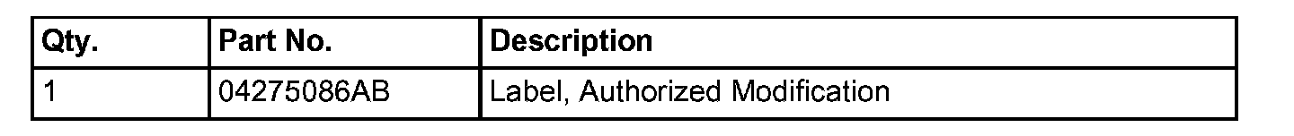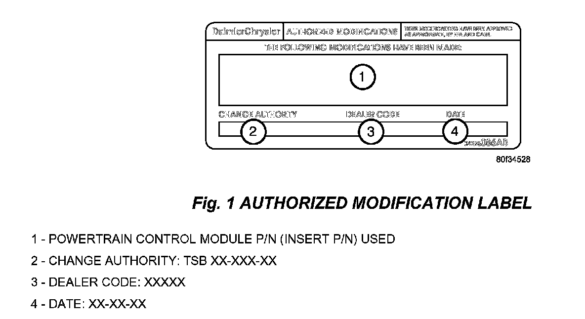 13. Type the necessary information on the "Authorized Modification Label" p/n 04275086AB and attach near the VECI label (Fig. 1).