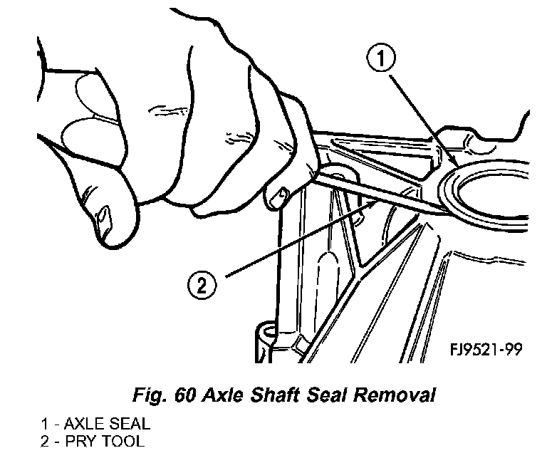 2. Insert a flat-blade pry tool at outer edge of axle shaft seal (Fig. 60).
