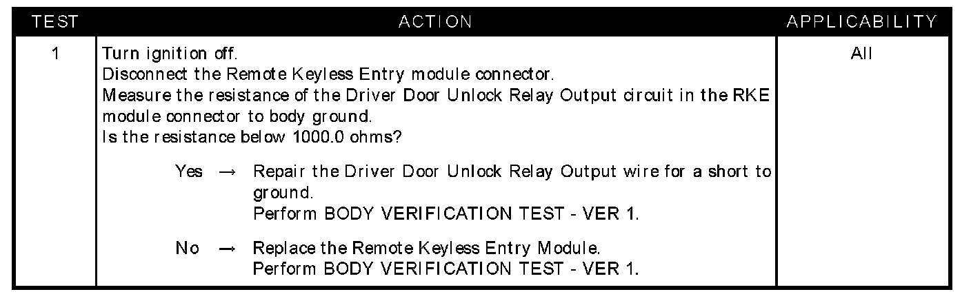 Driver door unlock relay output wire short to ground