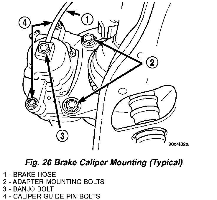 3. Remove the two brake caliper guide pin bolts (Fig. 26).