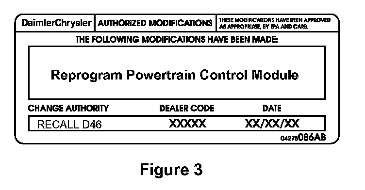 Type or print (with a ballpoint pen) the recall number, dealer code and date on the Authorized Modifications Label (Figure 3).