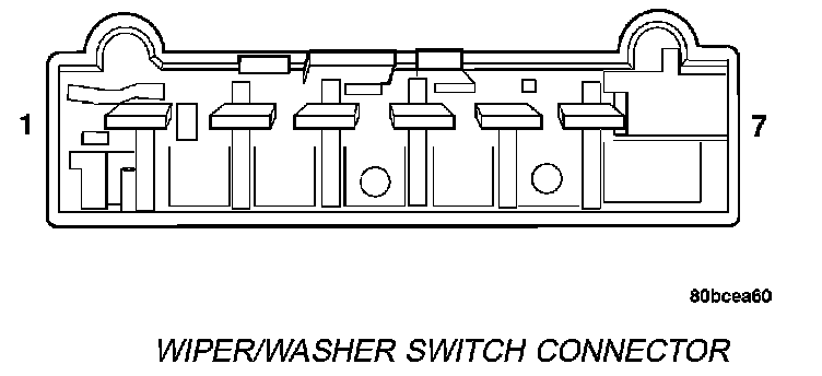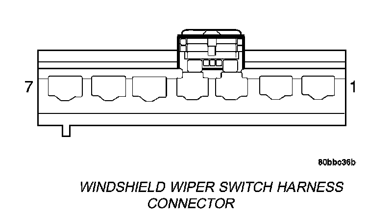 2. Turn ignition switch OFF. Disconnect the wiper switch harness connector. Using an ohmmeter with the motor in the park position, check for continuity between terminal 2 of the wiper switch harness connector and terminal 1 of the motor. If continuity, replace wiper switch. If no continuity, repair wiring as necessary.