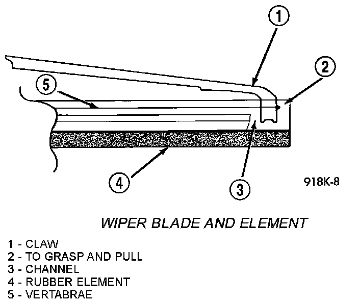 3. Remove wiping element from blade assembly. Pull stopper of the rubber element out of the end claw together with vertebrae (metal rails).