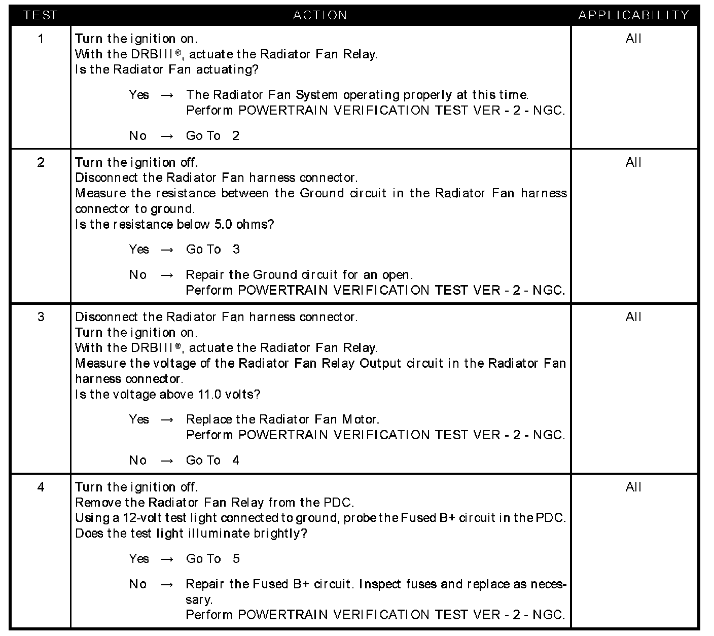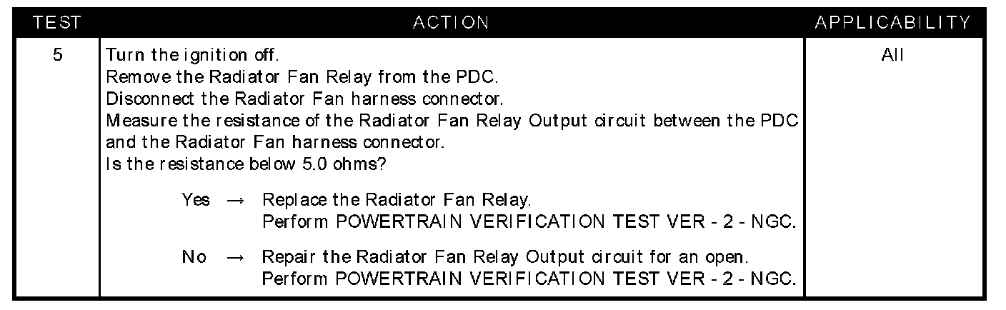 CHECKING RADIATOR FAN RELAY OUTPUTTest 1 - 4: