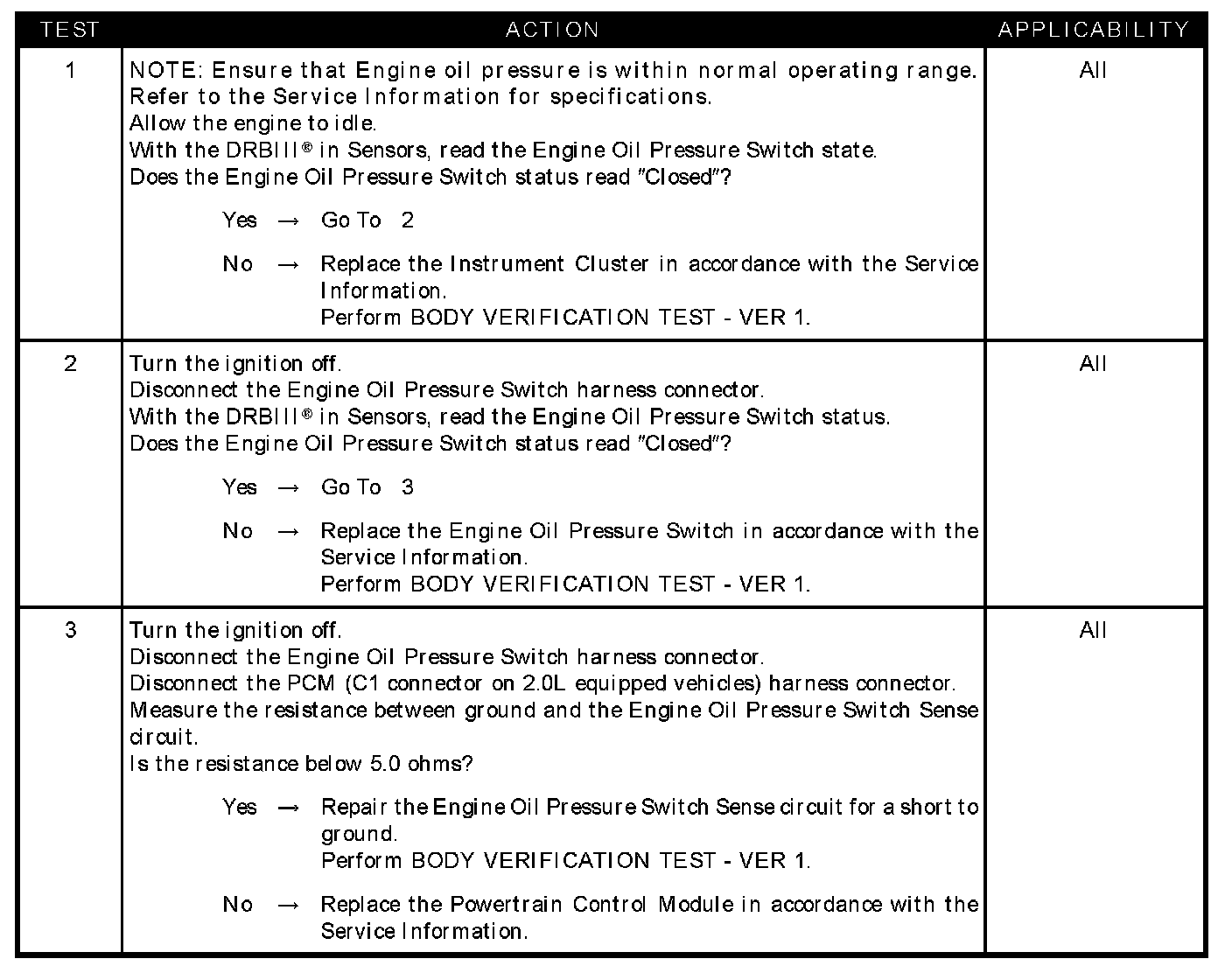 Engine oil pressure switch sense circuit short to ground