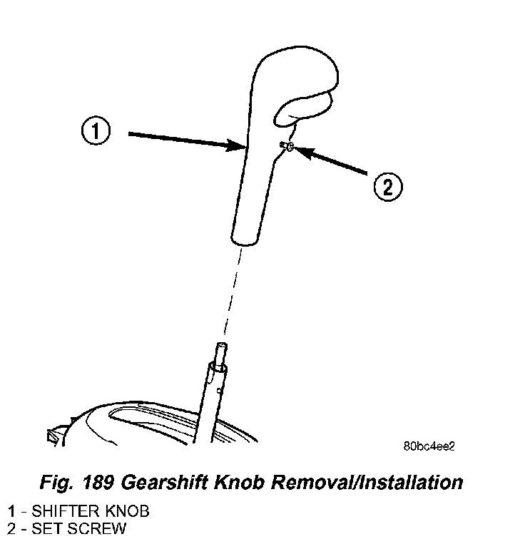 1. Loosen set screw and remove knob from shifter handle (Fig. 189).