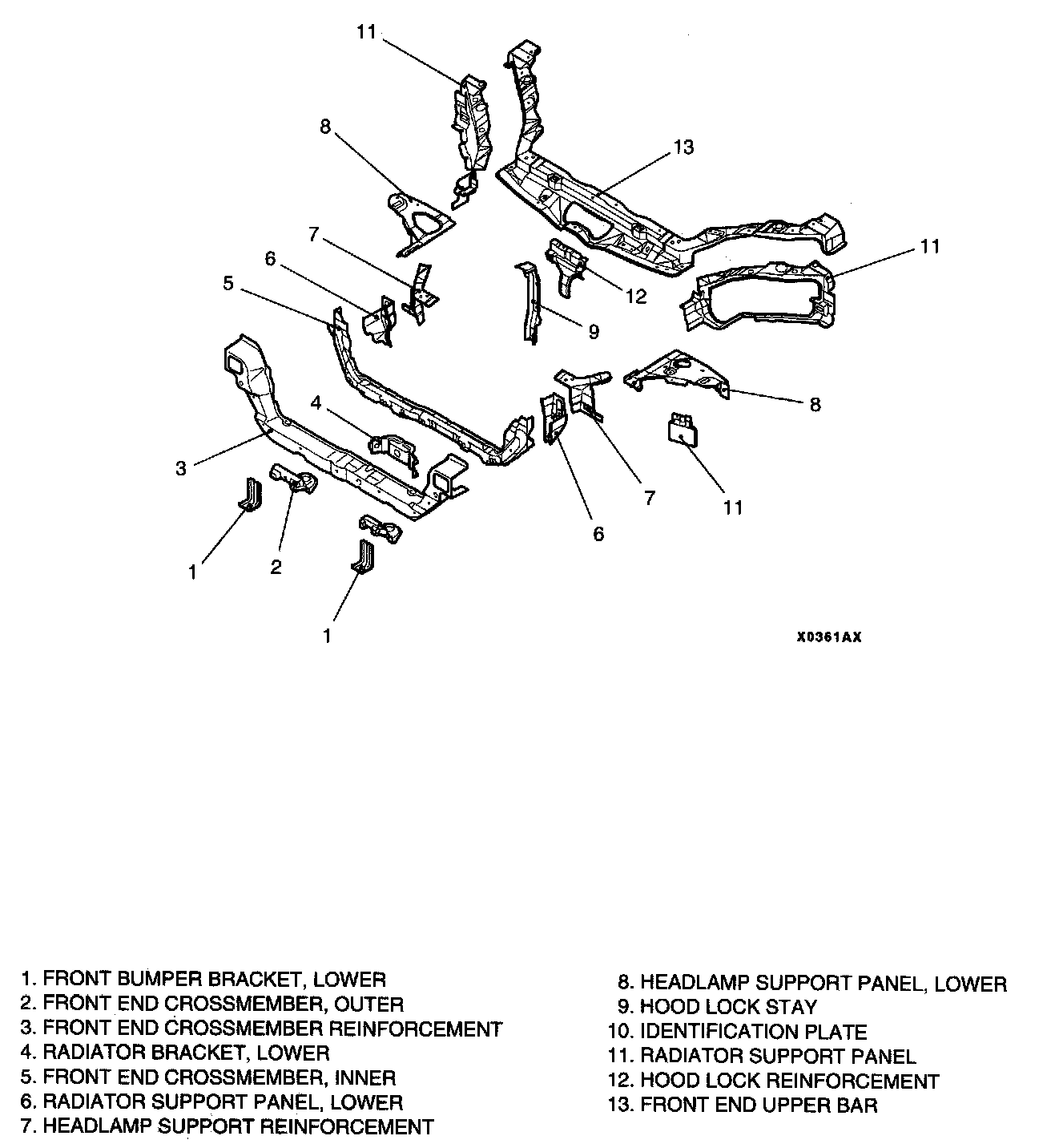 Large front end upper bars and headlamp support panel fronts with a separate structure and high rigidity have been adopted in the headlamp supports in order to improve the overall rigidity of the headlamp supports.