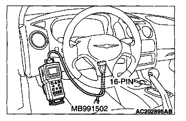 CAUTION: To prevent damage to scan tool MB991502, always turn the ignition switch to the LOCK (OFF) position before connecting or disconnecting scan tool MB991502.