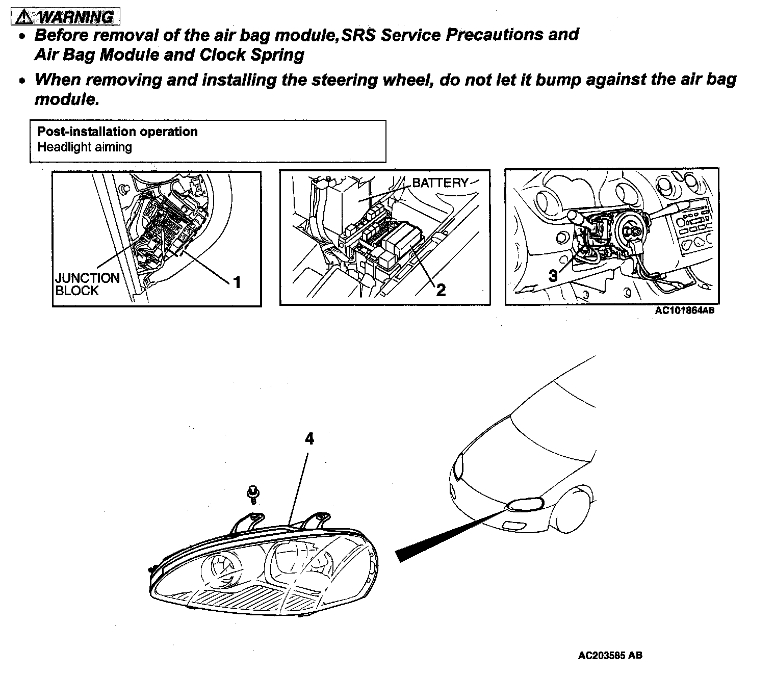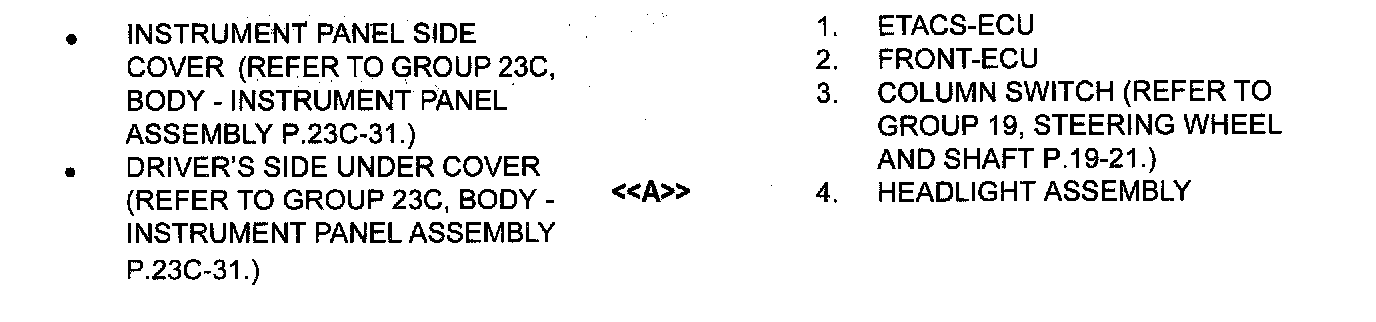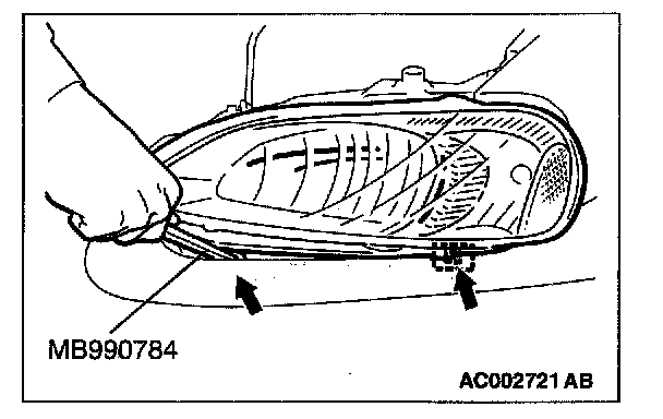 Insert special tool MB990784 to the place shown in the illustration. While lifting headlight, remove it.