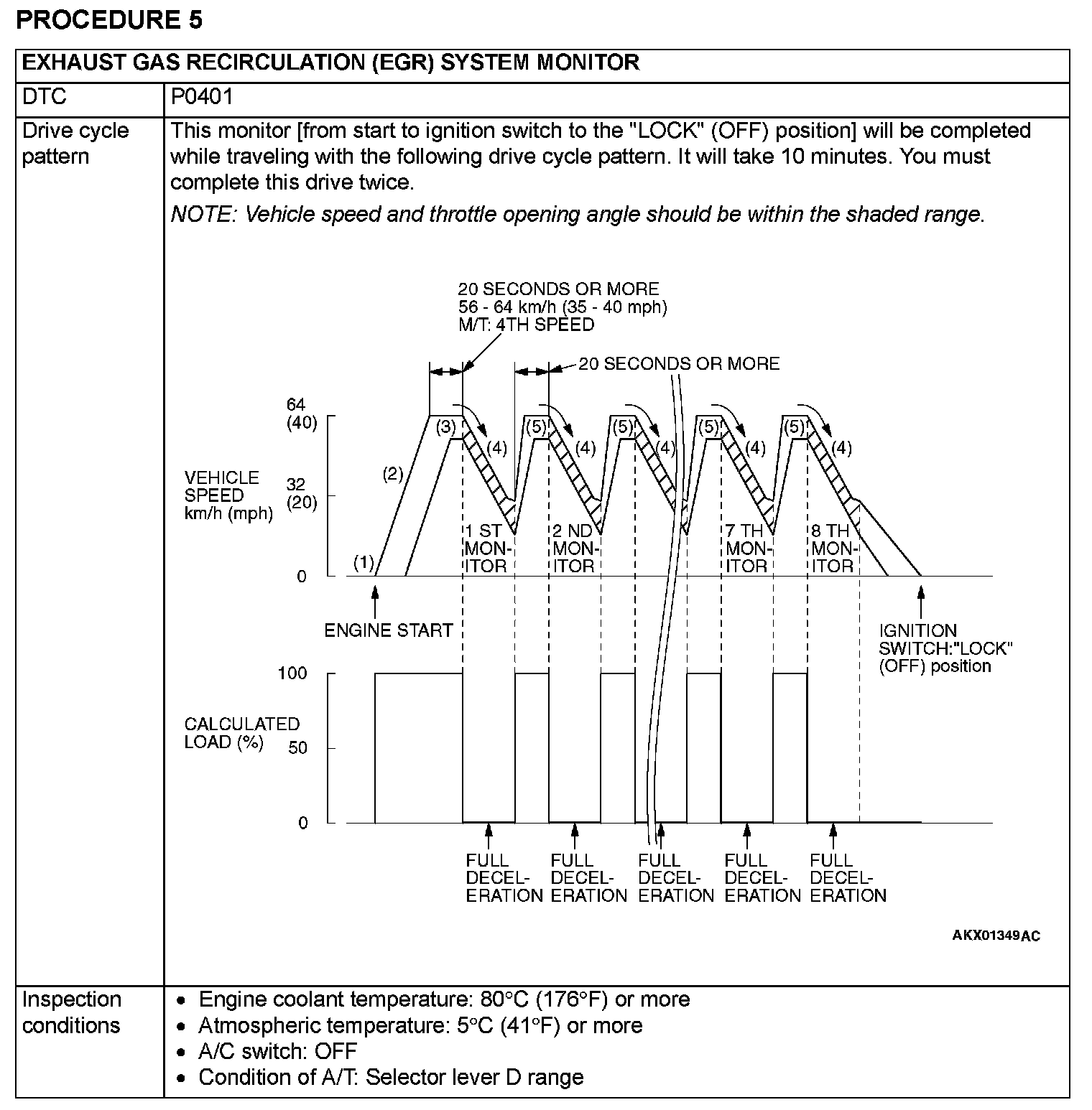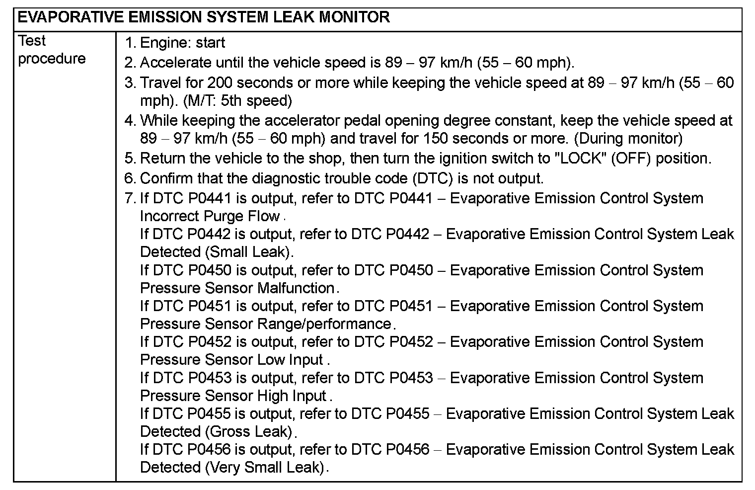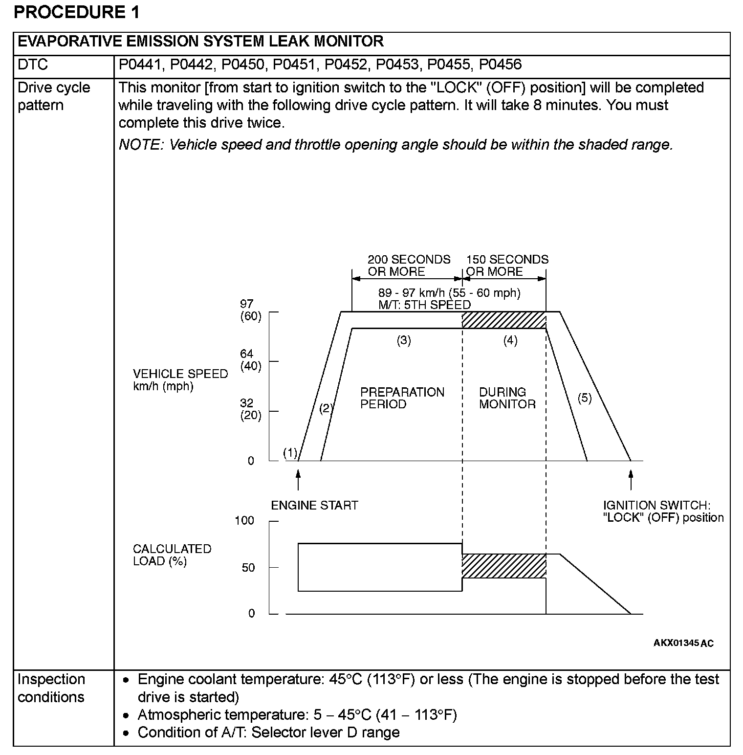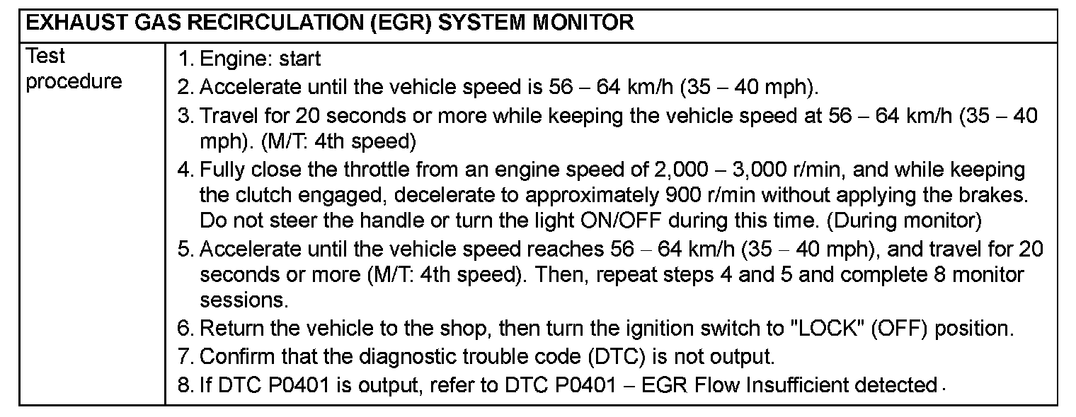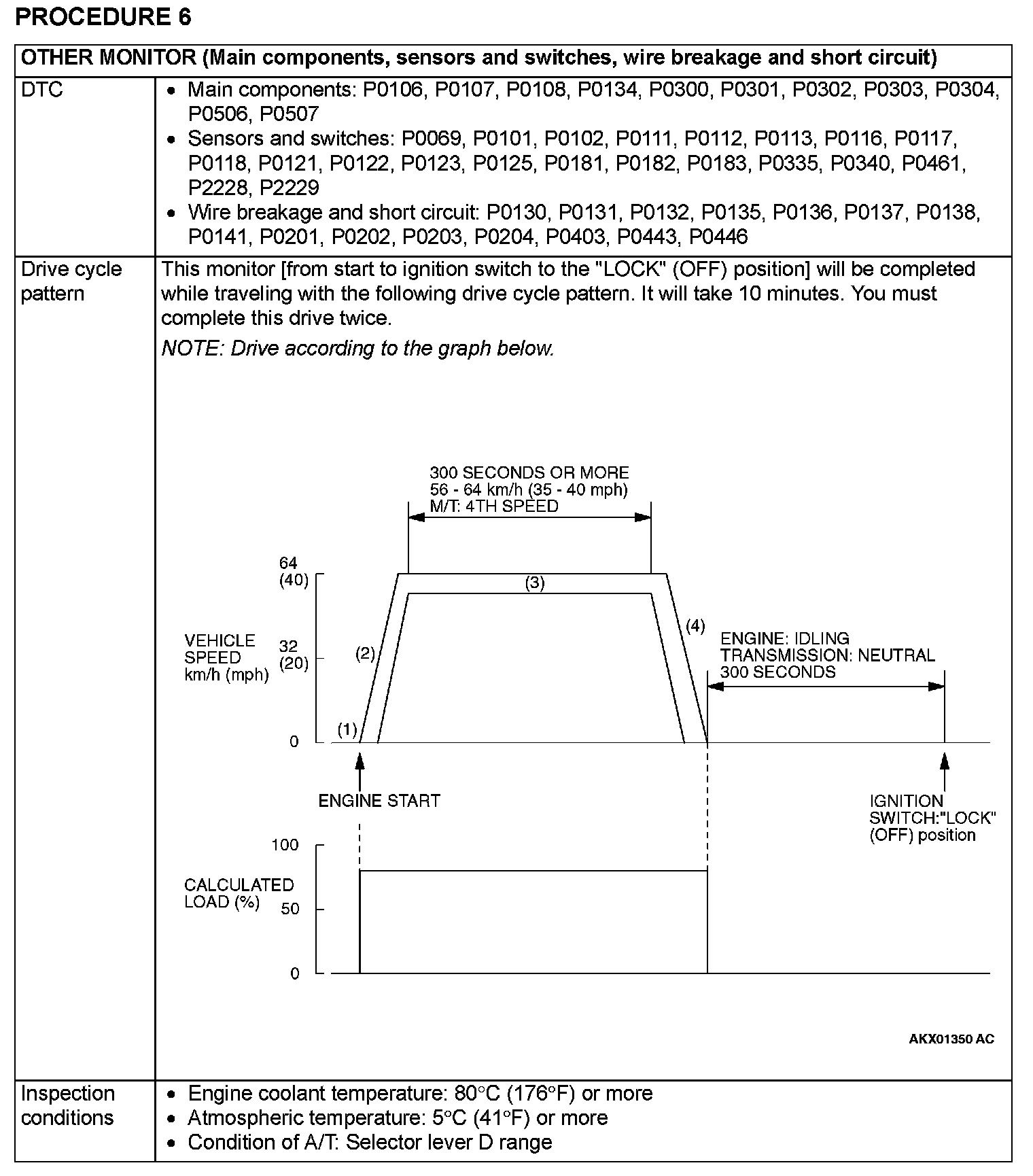 NOTE: Check that the diagnosis trouble code (DTC) is not output before traveling in the drive cycle pattern. Erase the DTC if it has been output. D