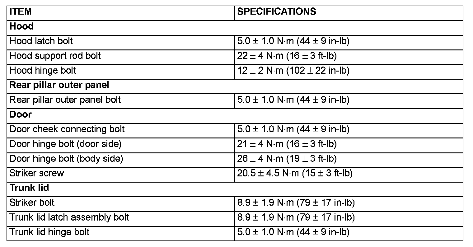Fastener Tightening Specifications: