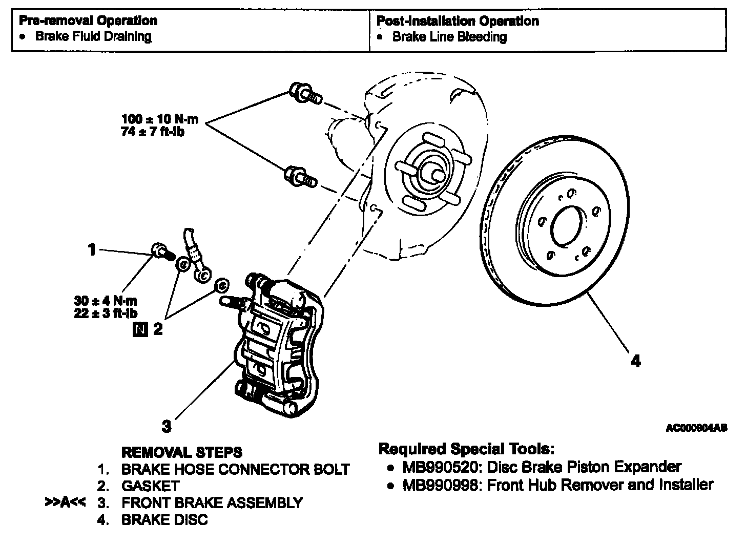 1. In order to measure the brake drag torque, measure the hub torque with the pads removed by the following procedure.