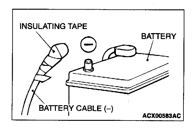 Disconnect the negative (-) battery cable from the battery and tape the terminal to prevent accidental connection and air bag deployment.