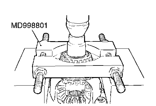 1. Support the taper roller bearing with special tool MD998801, and then set them on the press.