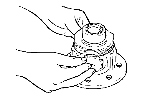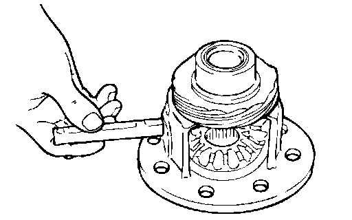 1. Mount a spacer on the back surface of the side gear, and then install the side gear in the differential case.