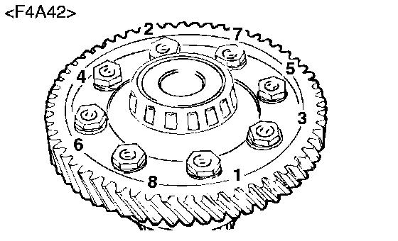 Apply ATF to the bolt, and then tighten the bolts to the specified torque in the sequence shown.