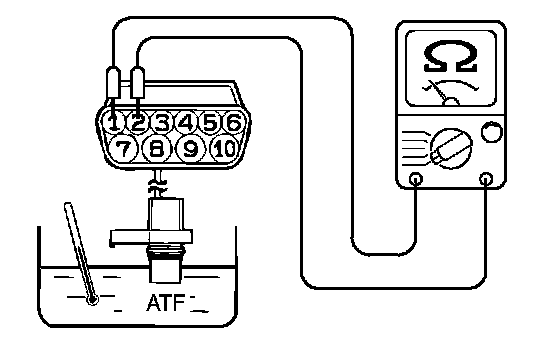 3. If the transmission fluid temperature sensor resistance is outside the specified range and the "N" range indicator light is flashing, replace the transmission fluid temperature sensor.