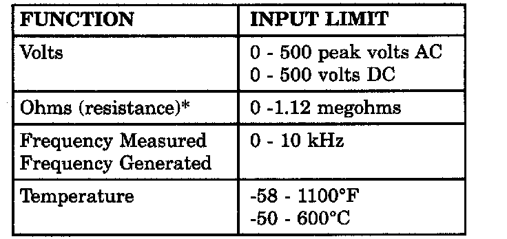* Ohms cannot be measured if voltage is present. Ohms can be measured only in a non-powered circuit.