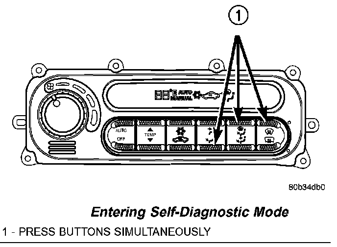 NOTE: It is important that no other control knob or button is pushed until all DTC's are read. Pushing any button except the A/C button or turning a control knob will end the diagnostic test without showing the rest of the DTC's. There also may be other DTC's stored in the BCM not related to the climate control system. These DTC's can only be found using the DRBIII (R) scan tool.