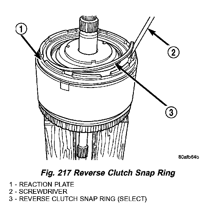 3. Remove reverse clutch snap ring (Fig. 217).