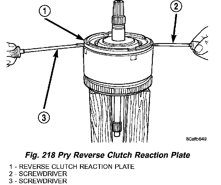 4. Pry up and remove reverse clutch reaction plate (Fig. 218).