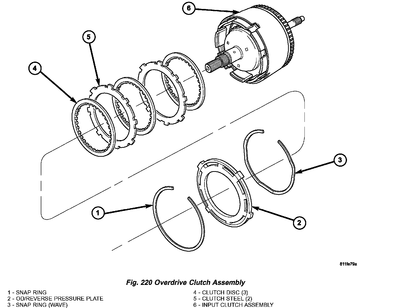 8. Remove OD/Reverse pressure plate wave snap ring (Fig. 220).