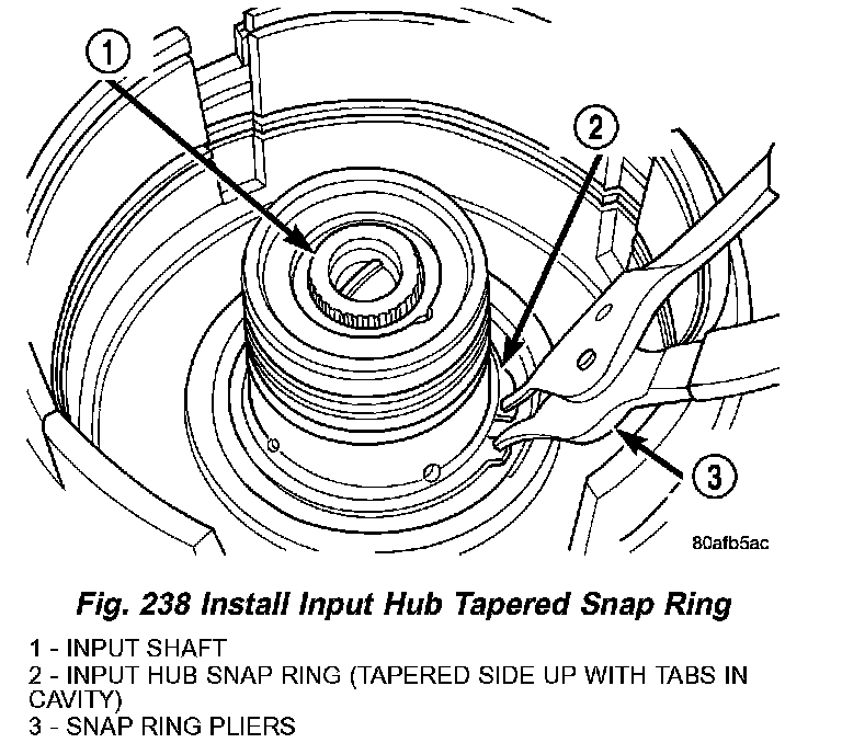 6. Install input hub tapered snap ring (Fig. 238) (Fig. 239).
