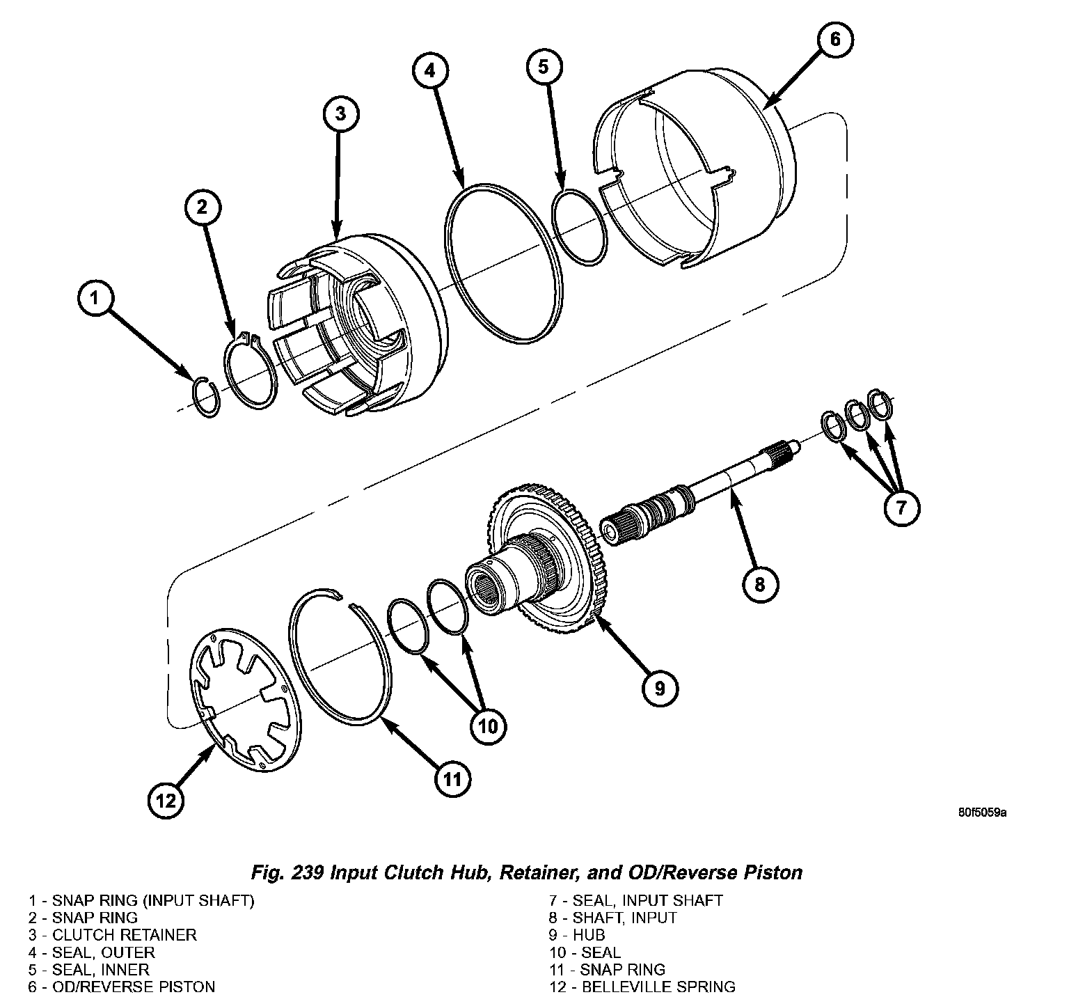 5. Install the input hub/shaft assy. to the OD/Reverse piston/clutch retainer assy. (Fig. 237).