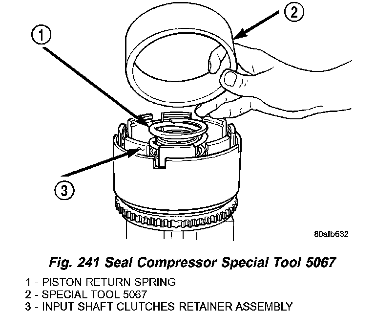 8. Install UD piston return spring and Tool 5067 as shown in (Fig. 241).