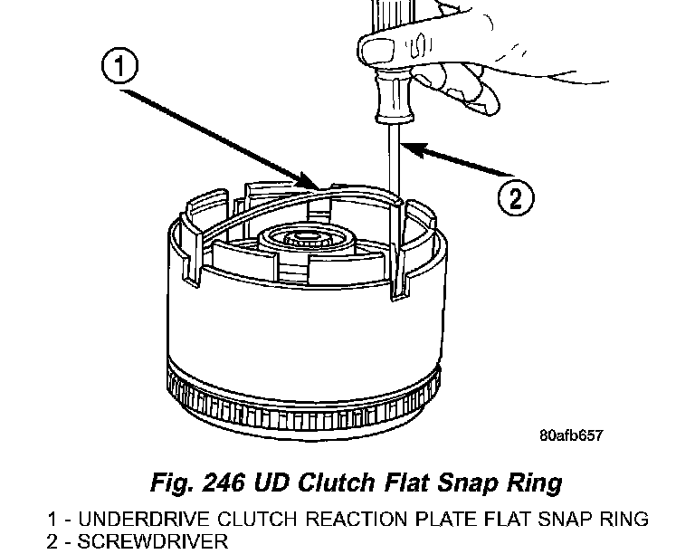 11. Install the UD clutch flat snap ring (Fig. 246).
