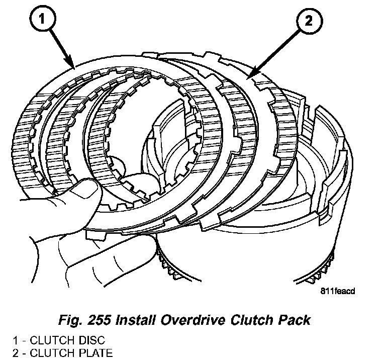 21. Install the OD clutch pack (Fig. 255).