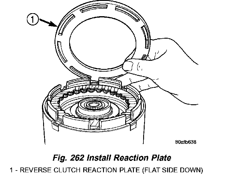29. Install reverse clutch reaction plate with the flat side down towards reverse clutch (Fig. 262).