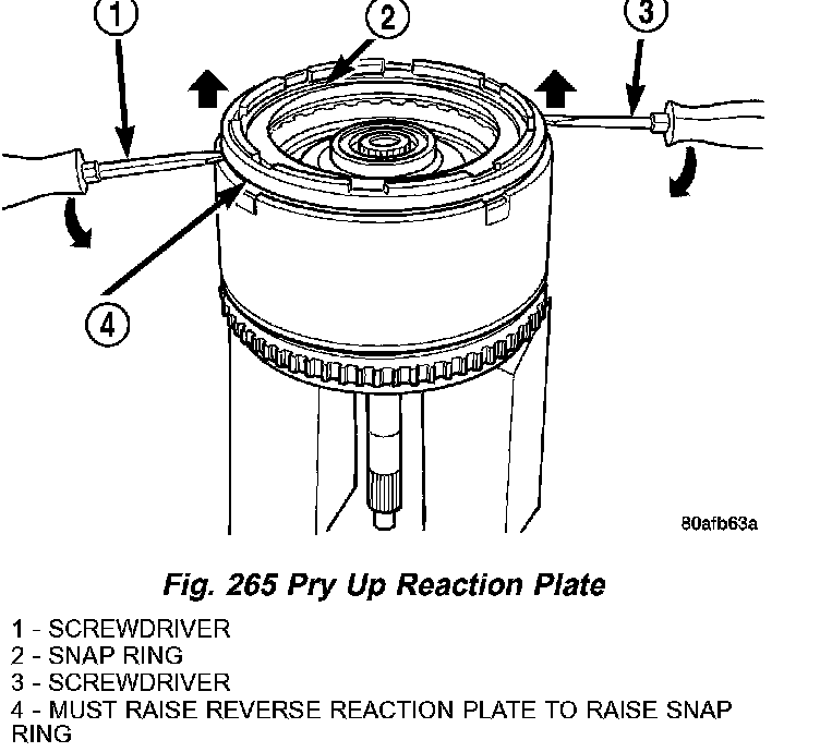 31. Pry up reverse reaction plate to seat against snap ring (Fig. 265).